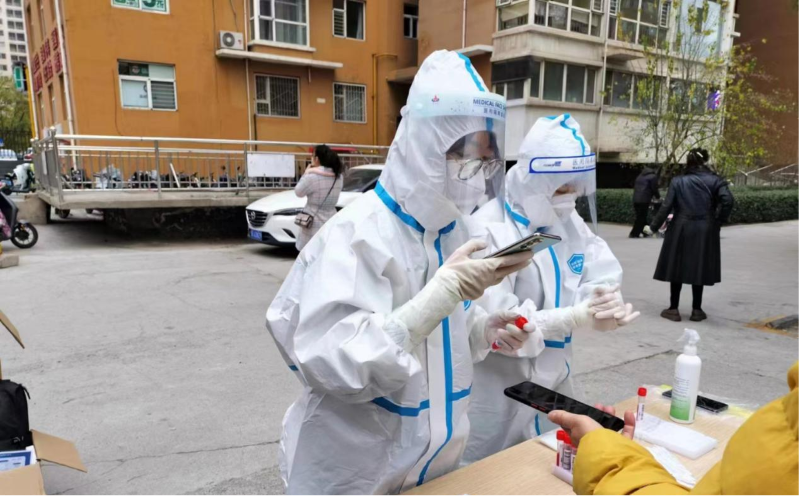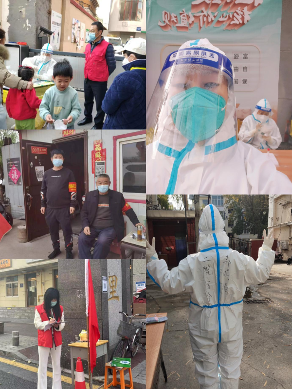 11月21日,機關黨總支號召全體黨員干部就地轉崗,黨員高欣、張曉風、李萍、麻鄭霞、武婷婷,預備黨員張玉葉等同志,紛紛化身“志愿紅”“大白”沖鋒在戰“疫”一線,協助社區開展維持隊伍秩序、噴灑消毒液、核對人員信息、掃描檢疫碼、采集核酸等工作,展現了新時代“市政人”的風采。