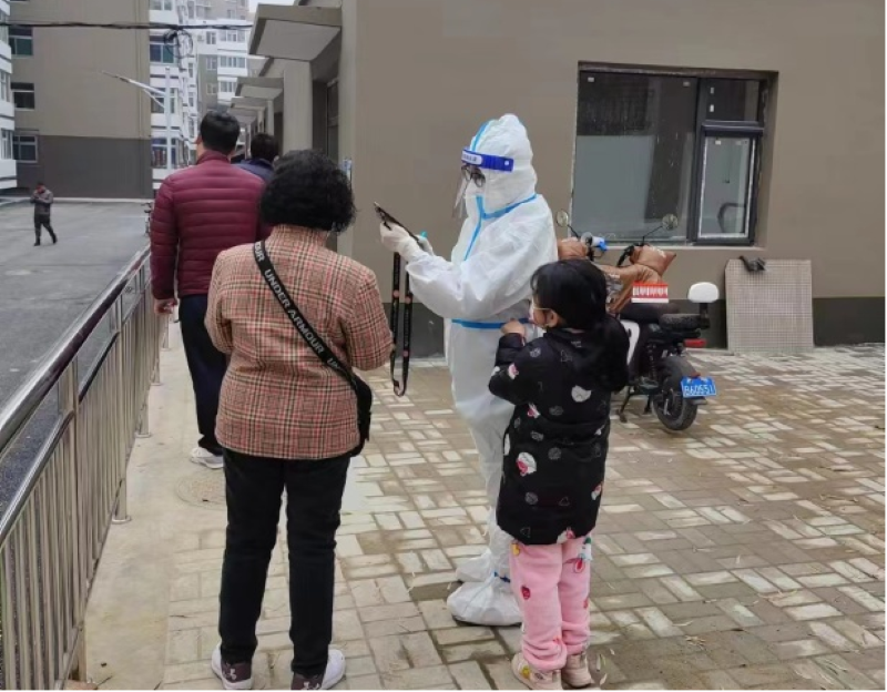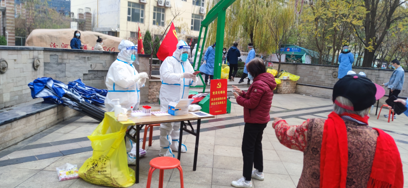 11月21日,辰宇公司董志超、李心貝、張維州、段曉娟、郭亞生等黨員職工就地轉崗,向社區報到,積極投身疫情防控的各項工作中,他們有的穿著白色防護服,有的穿著志愿者紅馬甲,協助維持秩序,負責采集信息,他們工作認真,耐心細致,積極配合社區人員開展工作,得到了社區居民的肯定和表揚。