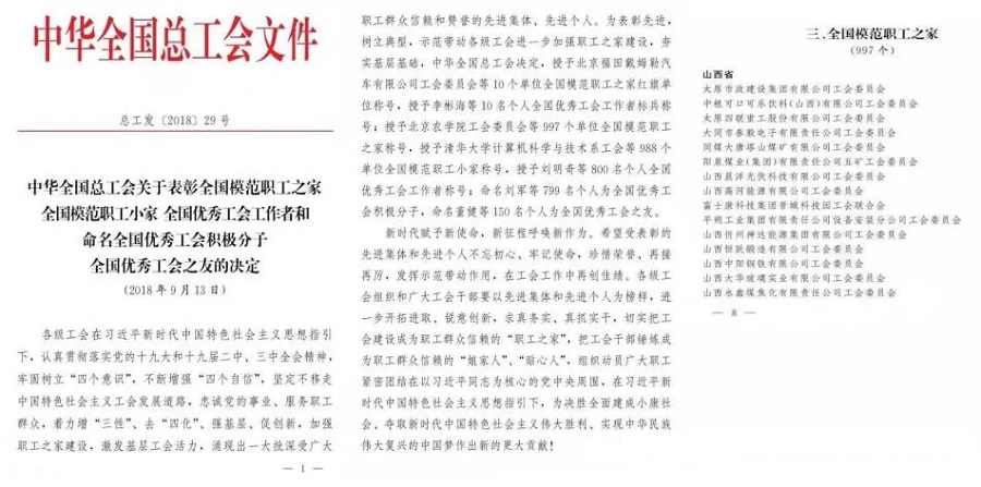 近日,太原市政建設集團有限公司工會榮獲“全國模范職工之家”光榮稱號。這是中華全國總工會給予基層工會的最高榮譽,也是對集團公司工會近幾年各項工作的充分肯定。