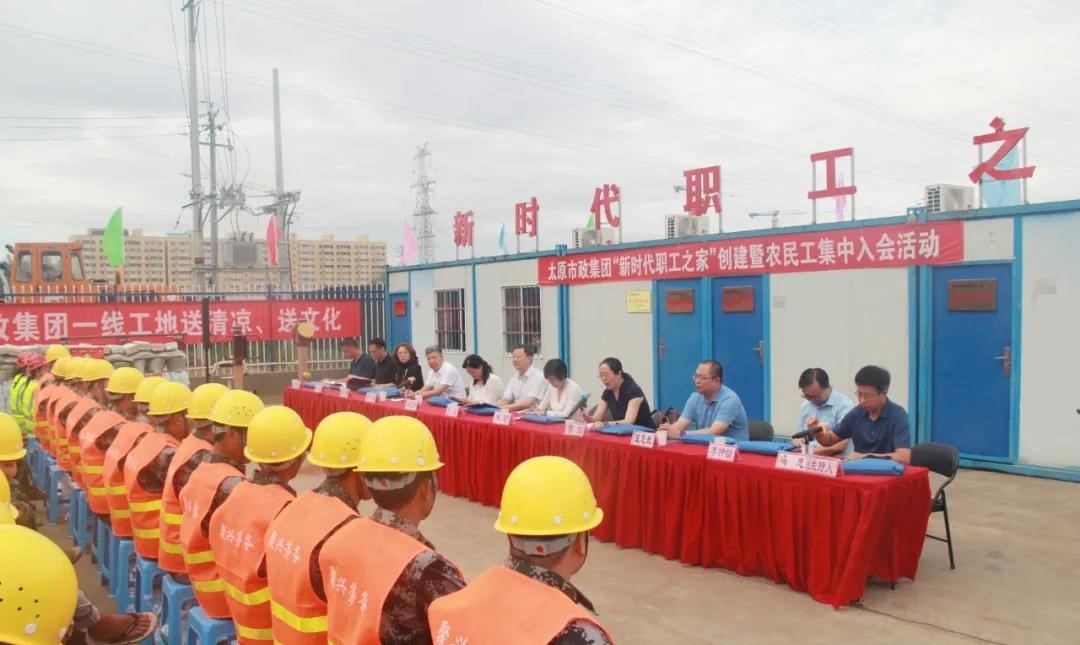 8月7日,太原市政建設集團有限公司“新時代職工之家”創建暨農民工集中入會活動在集團公司水馬路工地隆重舉行。市人大常委會副主任、市總工會主席張磊,省總工會組織部副部長朱莉,市總工會黨組成員、副主席康衛青,市總工會黨組成員、副主席曹劍及相關部室負責人應邀出席。集團公司黨委書記、董事長郝東輝,黨委副書記、副董事長、總經理溫慧武,黨委委員、監事會主席、工會主席馮忠,副總經理王志強及職工、農民工代表共230余人參加了活動。