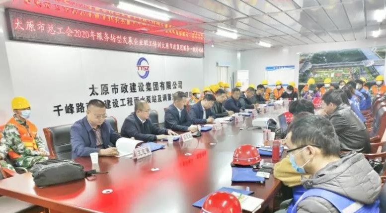 10月27日,太原市總工會2020年服務轉型發展企業職工培訓太原市政集團一線巡回培訓開班儀式在千峰路南延建設工程雨水泵站及調蓄池施工工程項目部舉行。太原市總工會黨組成員、副主席汪倫,太原工會干部學校校長張全民及太原市總工會、太原工會干部學校相關部室負責人應邀出席。集團公司黨委副書記、副董事長、總經理溫慧武,黨委委員、監事會主席、工會主席馮忠,副總經理王志強參加了開班儀式。