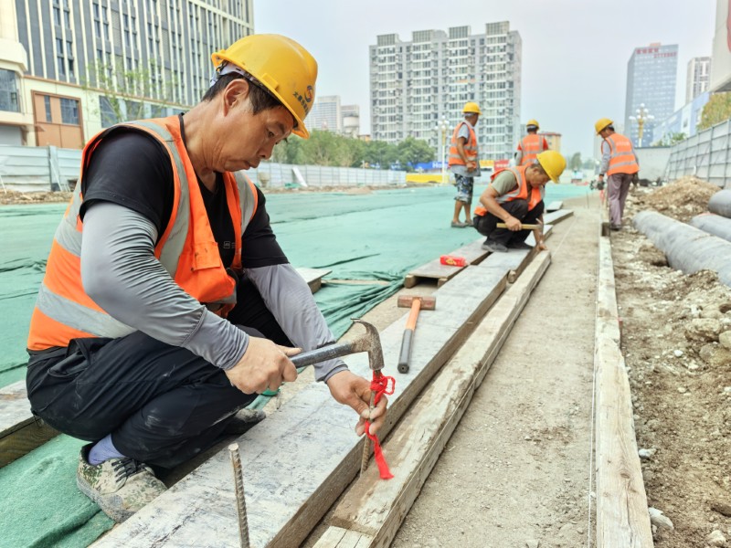 在迎澤大街(西段)地下管網更新改造工程施工現場,三公司全體施工人員爭分奪秒,以熱情與堅守和高溫抗衡,努力確保工程建設有序推進。施工中,測量員彎著腰,左手穩穩扶住全站儀底座,右手食指輕旋微調螺旋,瞄準鏡里的十字線與基準點精準重合時,記錄下最精確的坐標,鉛筆在曬得發燙的紙面上沙沙作響,快速演算著的數據是他們最扎實的功底。質檢員頂著烈日穿梭在施工現場,他們手持檢測儀器,一絲不茍地檢查著每一道焊縫的質量,記錄著每一處管材的規格參數,烈日當空卻絲毫沒影響他們觀察儀器讀數的專注,哪怕是0.1毫米的偏差,都逃不過那雙被曬得微紅的眼睛……他們只是施工現場建設者的縮影。在高溫酷暑下,全體施工人員的工裝早已被汗水反復浸透,又在高溫下結成鹽霜,汗水順著安全帽帶不斷滴落,卻絲毫未能動搖他們專注的目光。每一個精準的數據,每一道完美的焊縫,都是建設者們對承諾的最好詮釋,那些被汗水浸透的背影,在蒸騰的熱浪中勾勒出“市政鐵軍”最動人的剪影。