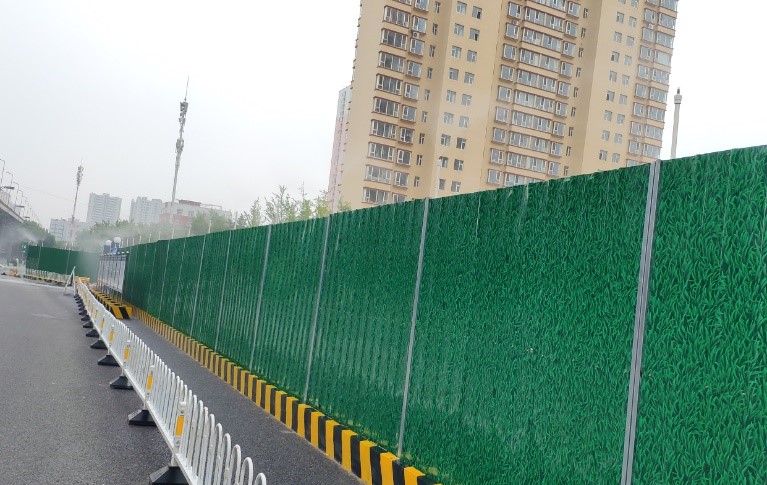 由于施工場地臨近居民區,項目部抓實抓牢現場安全施工管理,重點部署警示牌、施工圍擋、灑水降塵等設施,積極營造安全文明施工環境。在溝槽開挖路段,統一制作標準防護圍欄,懸掛警示標識,嚴格控制人員出入施工場地;在臨近居民區路段,修建便民通道,并在出口處設置警示欄桿,懸掛安全警示牌,張貼夜間反光貼,保障居民出行安全;在未完全封閉施工路段,項目部采用活動鐵馬和警戒線進行隔離,夜間路口放置爆閃燈,并設專人進行監管,保證施工現場安全有序;同時,項目部在東中環全線圍擋處加設噴淋設施,對所有裸露作業面使用綠網進行覆蓋并定時灑水降塵,營造綠色安全施工環境。