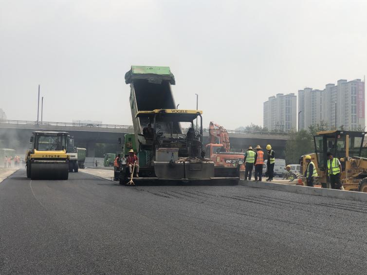八公司承建的迎澤大街東延建設工程東段目前已進入瀝青混凝土面層攤鋪作業階段,攤鋪機、壓路機、運料車往來穿梭,一條嶄新的道路逐漸露出“真容”。全體參建人員按下“加速鍵”,筑牢“防火墻”,始終堅持強保障、重落實,全力推進工程順利進展。