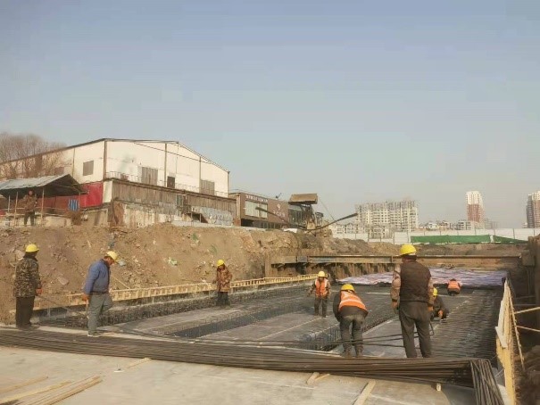 在雨水方涵的施工過程中,混凝土澆筑是整個節點施工的關鍵環節,為確保頂板澆筑質量,項目部嚴格按照施工設計要求,多措并舉,有效確保了施工質量。為提高澆筑質量,項目部主動協調,聯系兩家混凝土廠商隨時供料,有效確保了混凝土澆筑的連續性;在模板澆筑過程中,嚴格按照澆筑、初凝、終凝的施工工序,在各個環節都做到精細把控;在混凝土出廠時,要求必須對罐車進行保暖措施,并在混凝土中摻半抗凍劑;在方涵支護過程中,在方涵中間用鋼斜撐進行加固,確保在混凝土澆筑時模板不發生偏斜;在方涵模板鋼筋綁扎過程中,安排質檢員隨時進行監督,對鋼筋型號、綁扎密度、支模的標準進行了認真檢查,有效確保了方涵質量。