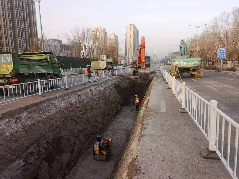 接到施工任務后,項目部超前部署、科學規劃,開展工程推演,根據施工實際內容,將工程分為8個標段,提前安排各標段的人、機、料配置,并組織進行現場勘測,多處布設探坑,認真摸排現狀管線位置,精準測量拆遷地段,做到施工前各項數據“成竹于胸”。由于施工正值冬季,項目部結合施工現狀,制定冬季施工專項方案,提前籌備各類防寒物資,安排專人負責生活及作業區的用電及防火管理,有效確保施工安全。同時,項目部同步進行工地大門、圍擋安裝,各類標識標牌準備等工作,僅用2天時間已將3000多米圍擋,10個工地大門及各類標識標牌安排就位,展現集團公司的良好形象。