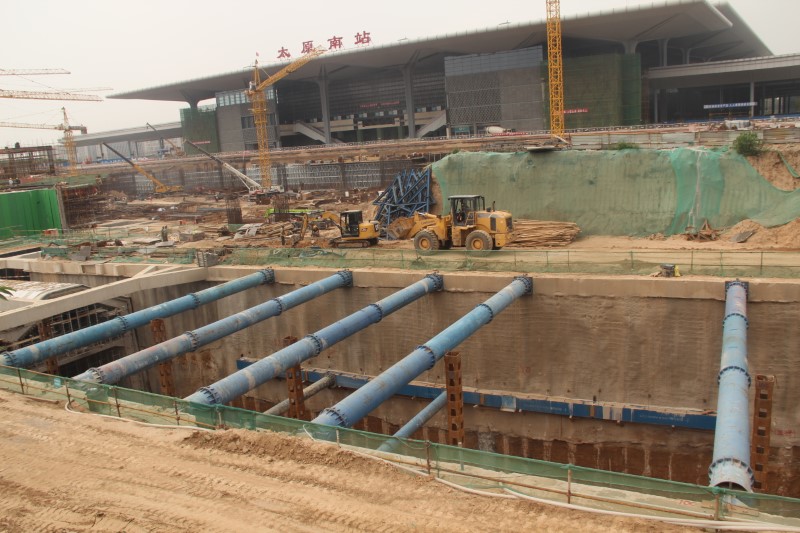 太原南站東廣場配套路網工程位于太原南站東側,西起太原火車南站東出口,東至太行路,南至車站南街以南200米,北至南中環街,共包括10條市政道路、五條高架匝道引橋及所屬沿線的照明、管線等配套設施,同時外加2條貴賓小路。其中,北營北路包含地下通道及地面道路兩部分,地下通道全長1124米。該工程作為省級重點工程項目,受到了社會各界的重點關注和上級領導的高度重視,于2017年4月開工建設,由八公司負責承建。施工中的重難點在于北營北路地下通道最深處達21米的深基坑施工,項目部采用混凝土灌注樁加內支撐的模式,第一 道內支撐為混凝土支撐,其余為多道鋼支撐,保證基坑壁穩定性。地下通道施工時,該通道頂板為折線拱形頂板,澆筑難度較大,項目部組織技術人員根據工程特點,研究出一種全新的支模方法,利用插模板的方式進行分段澆筑,在確保工程質量的同時,保證施工進度。同時,由于該工程情況復雜,項目部技術人員從“細節”入手,及時發現問題,并反復溝通協調,提出了合理化建議,確保了工程有序推進。在2019年的施工過程中,集團公司組織五家施工單位,60多臺施工機械、130多名施工人員,經過21天的奮戰,協作完成10條道路從路基、水穩到瀝青攤鋪的施工任務,其中瀝青攤鋪面積達到7萬平方米。全體參建人員在太原城市建設的“戰場”上,傾情演繹著市政鐵軍的“速度與激情”,太原南站以嶄新的面貌迎接“二青會”的八方來客。