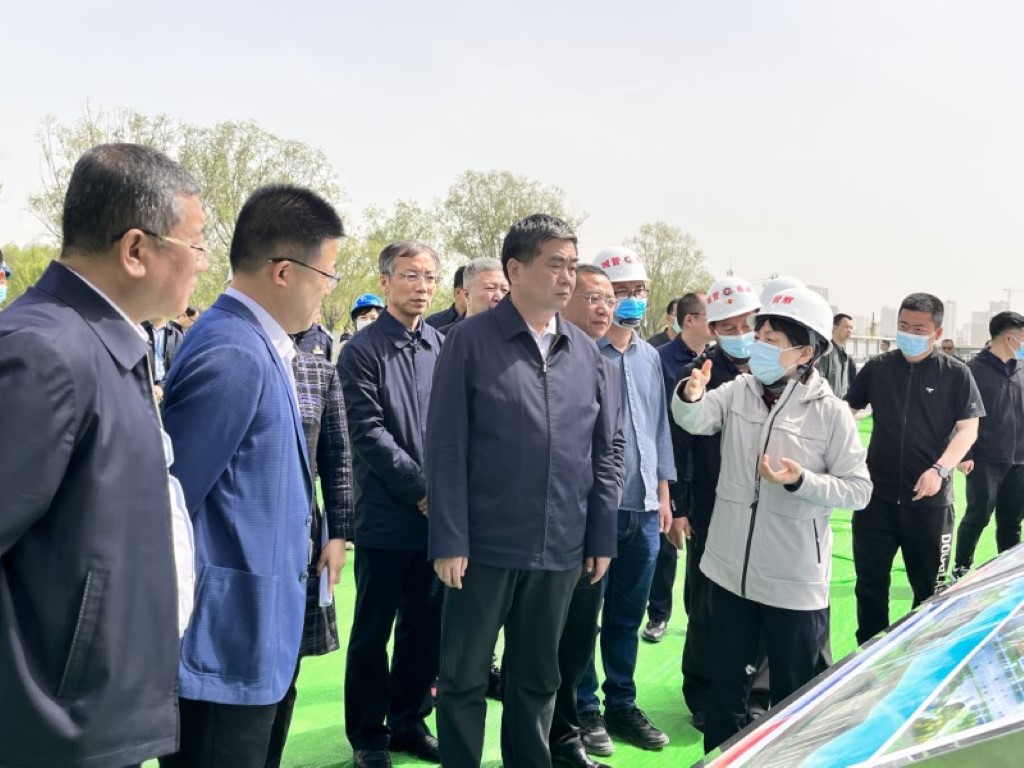 4月18日上午,太原市委副書記、市長張新偉,副市長盧俊峰一行赴興華街周邊排水系統及道路園林景觀提標改造工程施工一、二標段現場調研指導。