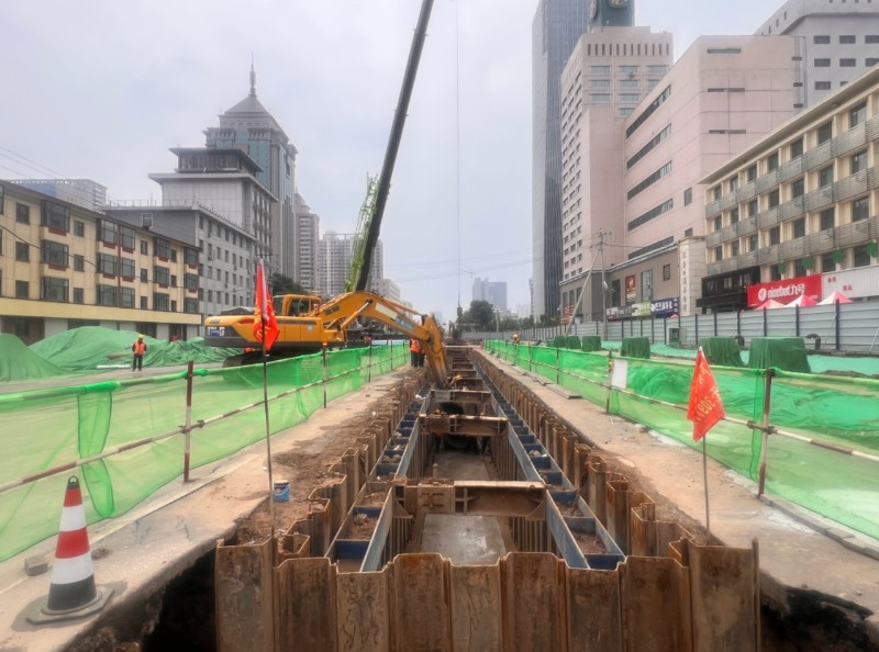 新建路地下管網更新改造工程施工過程中,太原市政集團全力克服管線復雜與工期緊迫的雙重挑戰,科學統籌工期計劃,優化配置施工資源,嚴把工程質量細節,加速推進項目建設,全力推進地下管網“煥新”。截至目前,該工程已完成鋼板樁支護4810米,三軸水泥攪拌樁支護579米,雨污水溝槽開挖616米,降水井74座。