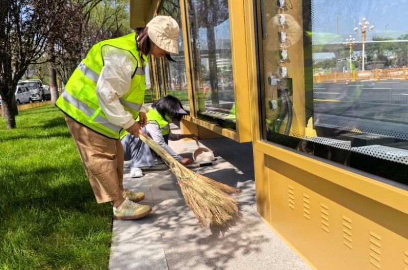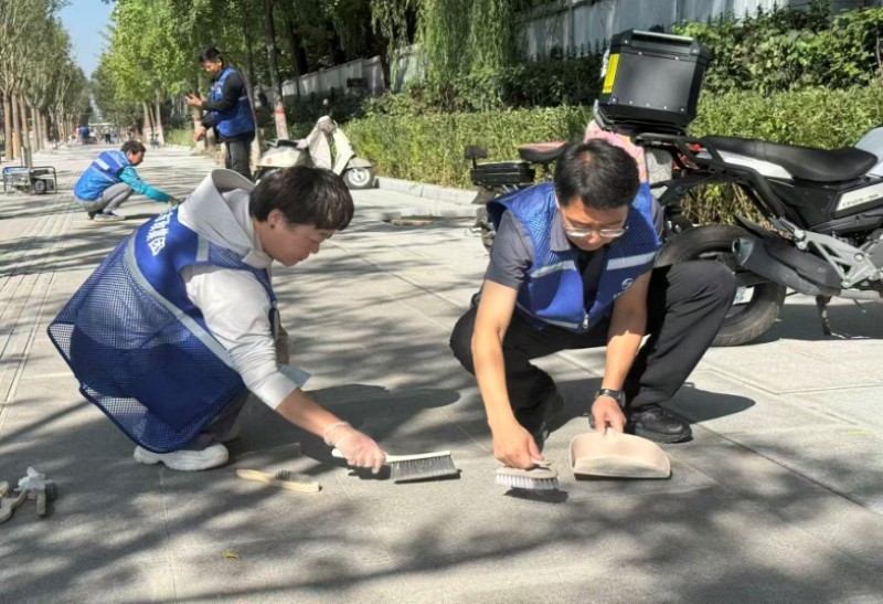 活動自9月4日起為期六天,覆蓋迎澤大街(西段)全線,重點圍繞附屬設施清潔與道路精細化維護展開?;顒又?,身著統一藍色“太原市政集團”馬甲的志愿者們,手持長柄擦洗器、水桶、抹布、鏟刀、掃帚等工具,對道路兩側公交站臺、路燈基地、護欄、照明燈桿等設施進行系統清理與擦洗;同步推進地磚灌縫精細化維護作業,通過專業操作,確保每一條裂縫都“嚴絲合縫”,有效提升路面耐用性與通行舒適度,以實際行動為市民出行安全與舒適保駕護航;同時,志愿者專門對道路沿線的石頭字景觀展開描金作業,細刷蘸取金色涂料,一筆一畫精心描摹,成為主干道上一道兼具文化氣息與視覺美感的獨特風景。