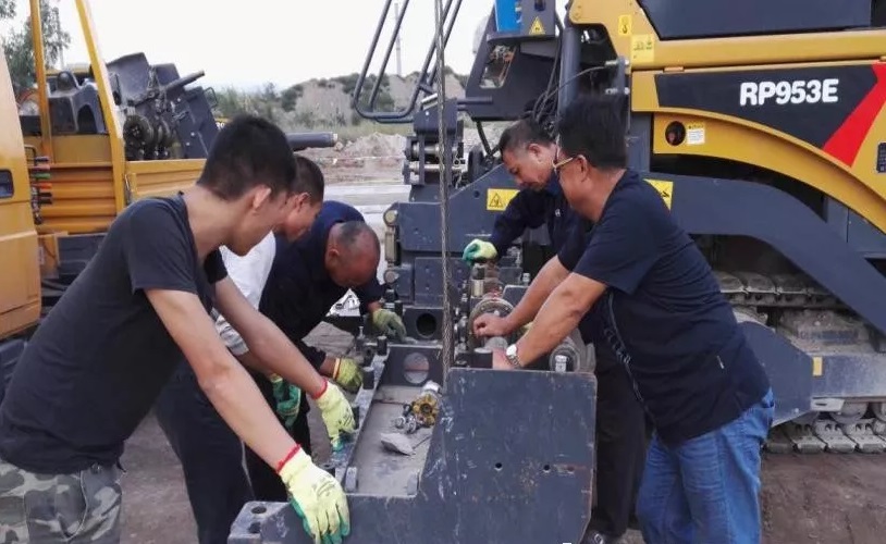 租賃公司設備維修組人員如同 “永動機”,以攤鋪節點為指令,不分晝夜、隨時待命。截止目前,共完成攤鋪機拆裝達 100 余次,最多時一天拆裝 6 臺次。維修人員常常踏著月光奔赴現場進行攤鋪機拆裝,伴著朝霞匆匆趕回單位進行其他設備的搶修作業,正是有了他們這些時刻保障攤鋪的幕后 “藍盾”,才確保了施工的順利進行。同時,租賃公司嚴把 “兩關”,把好機械調配關,根據施工作業面、工程量要求,進行機械設備數量配置;把好機械檢修關,安全技術科人員加大對機械巡檢頻次,消除安全隱患。