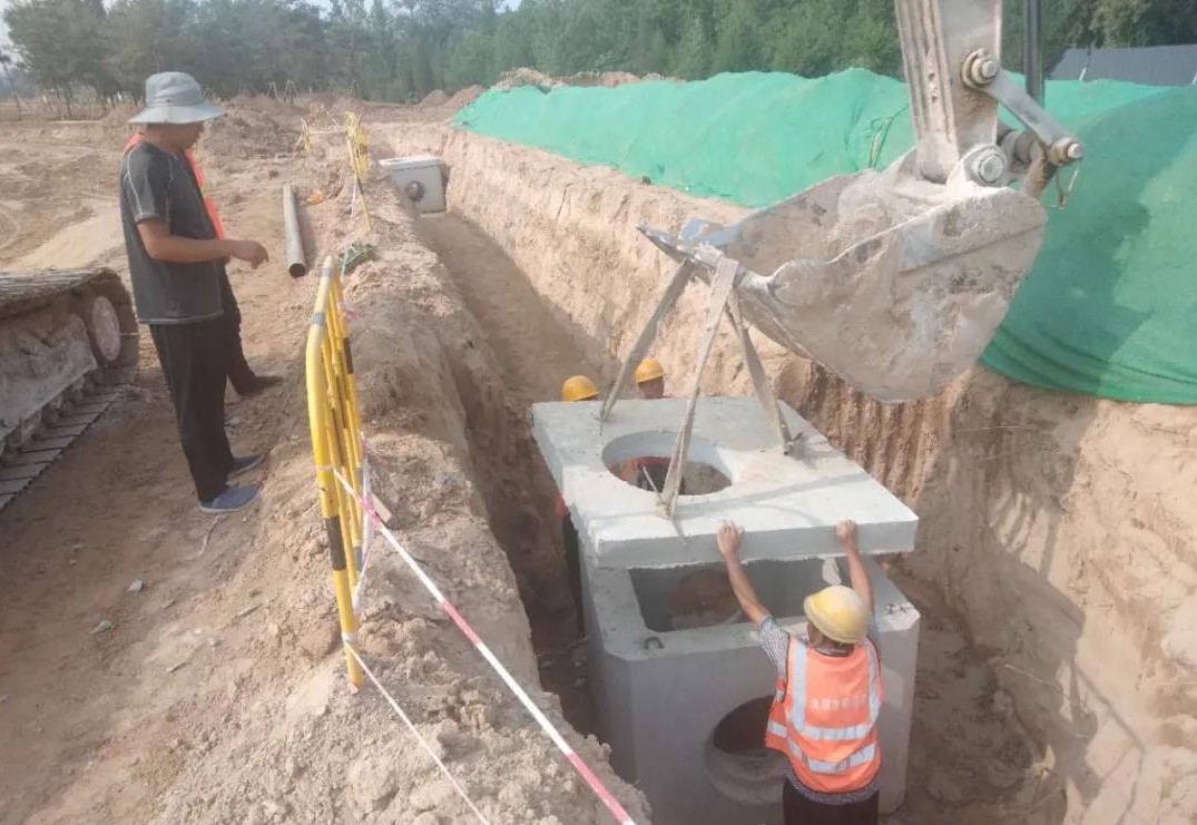 該工程包括道路工程、給排水工程、供熱工程、電氣及弱電工程等,涉及雨水、污水、給水等九種管線施工。施工前,項目部針對工程管線多,且各類管線的埋深及位置不同,因地制宜、提前規劃,安排施工人員第一時間摸清管線施工位置,做好分區域、分層次施工安排。施工中,項目部針對工程點多面廣的情況,將整個工地分為東西兩個工區,安排四個施工隊分別負責各類管線施工,交叉利用機械進行倒替作業,為后續施工贏得更多時間。同時,由于雙塔景區項目分九個標段,周邊施工的兄弟單位眾多,管線及道路施工都與園林、古建等施工單位存在交叉施工的情況。項目部“兩手抓、雙推進”,一邊組織相關人員進行現場勘察,優化施工方案;一邊積極與業主及周邊施工單位進行溝通協調,合理確定機械、材料等進場時間,采取錯峰施工,最大化減小交叉施工影響,加快推動工程進展。