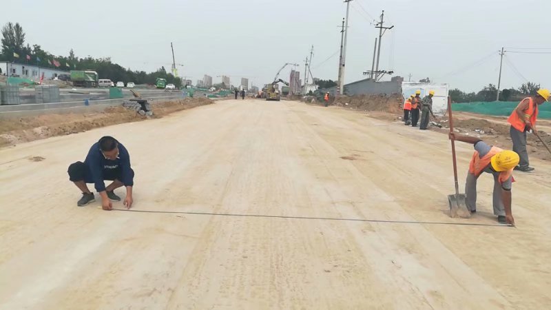 一公司承建的中心街(東中環—東峰路)建設工程在檢查井升井施工中,項目部用沖擊鉆鉆孔在井室頂板和井筒上植入鋼筋,以固定臨時井蓋和鋼板,防止在攤鋪碾壓過程中井蓋水平位移,使物料深入井內影響工程質量。同時,鋪筑水泥穩定碎石底基層、基層,測量人員用坐標標識出井位,每一層水穩層完工后,及時挖出水泥穩定料,開挖寬度自井筒壁向外80厘米,水泥穩定料終凝后再原位回填至水穩底基層設計頂高程。在安裝井蓋座,精調井蓋高程時,項目部采取井字型掛線,調好后及時擰緊蓋座上方的固定螺帽,確定螺帽不松動后,澆筑井蓋周圍C25 砼,澆筑時先取少量砼填實井蓋座底砼,井內縫隙采取封堵措施,防止漏漿,保證井座底砼密實后澆筑井周砼,砼振搗密實,覆蓋灑水養護。古城北街建設工程在人行道磚施工中,項目部嚴格按技術要求程序進行原材料試驗和配合比組成設計,加強工序間的質量控制和施工過程控制,技術人員隨時督促檢查施工,正確指導施工,加強自檢及時糾正。施工時,項目部首先清除基層底灰渣和雜物,在鋪結合層砂漿前,先潤濕并拍實基層,然后濕潤晾干面包磚,在鋪貼定位后,將面包磚均勻輕擊壓實,確保鋪砌穩固,表面平整,縫線直順,灌漿飽滿,保證無翹邊,翹角,反坡等現象,將質量標準嚴格落實,做到實處。