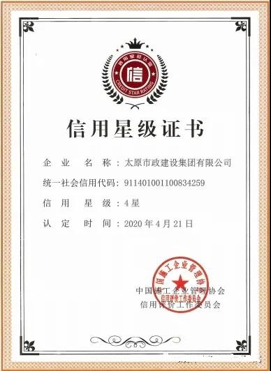 太原市政建設集團有限公司榮獲“2020年度工程建設誠信典型企業”榮譽稱號
