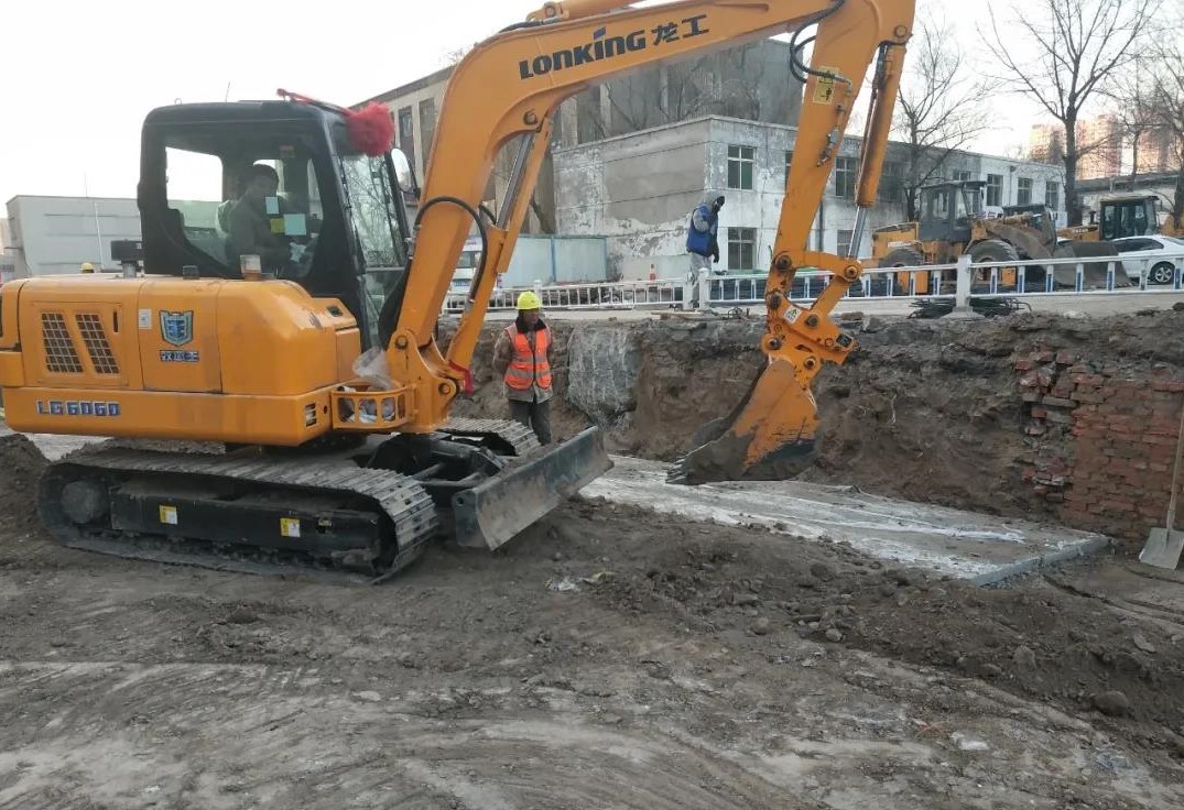 冬季施工,凍土嚴重影響了溝槽開挖,為解決凍土隱患,項目部集思廣益,通過研究決定先用炮錘、挖掘機破開受凍路面,后利用重型卡車及時清運的方式,確保了溝槽開挖的順利進行。施工過程中,項目部采用分段流水作業的方式,以開挖一段、檢查一段、完善一段的方法,確保每工段施工的質量達標。為了推進施工進度,項目部倒排工期,每日匯報、總結施工進度,并提前安排施工量,實現了日進度工作的緊密連接,環環相扣。同時,項目部根據現場施工條件,在部分路段采用了雨污合槽的方式,有效提高了施工進度,間接降低了施工成本。